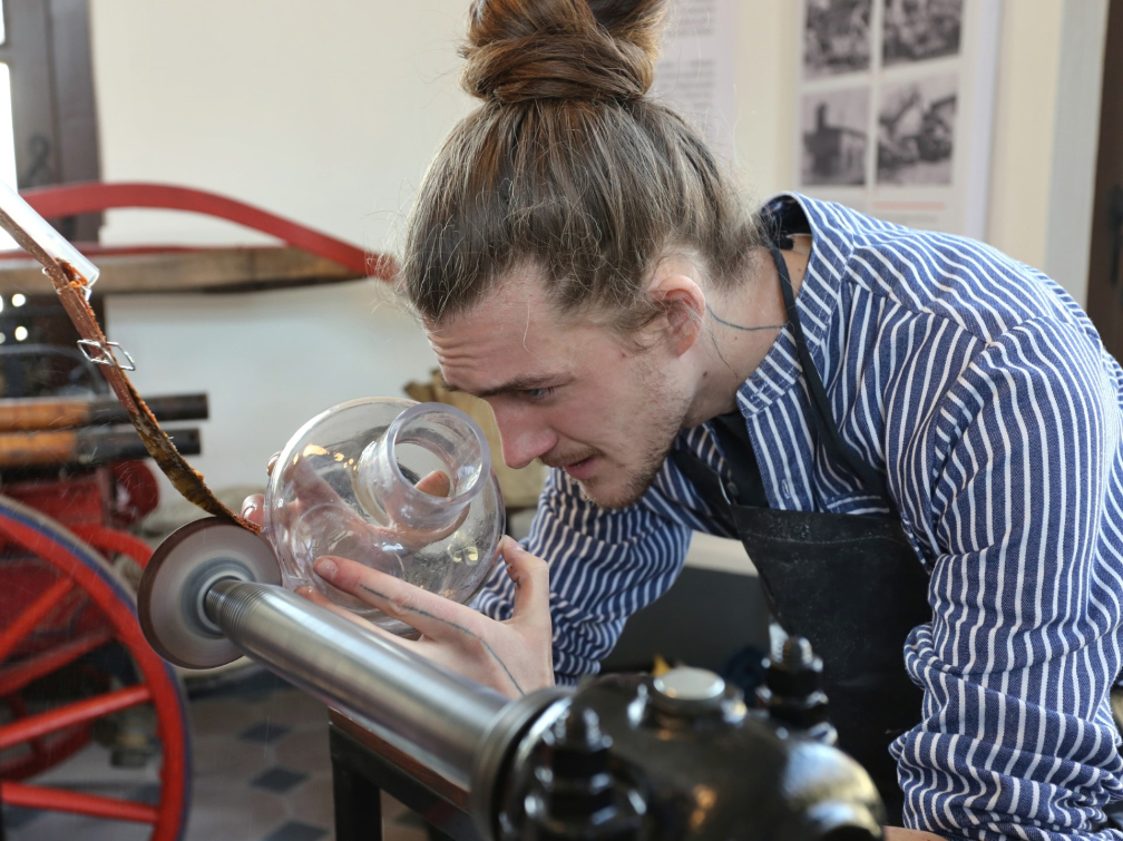 Vsetín, Val. Meziříčí – Příležitost proniknout do tajů broušení skla na kuličském stroji budou mít účastníci dvojice workshopů Muzea regionu Valašsko se sklářským výtvarníkem Františkem Muchou. První proběhne v sobotu 9. prosince na zámku Vsetín, druhý o týden později v sobotu 16. prosince na zámku Kinských ve Valašském Meziříčí. Kapacita je omezena, zájemci se musí rezervovat předem.