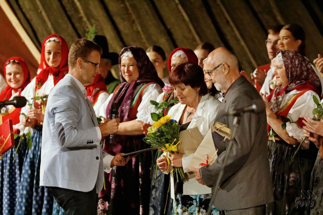 Rožnov - Manželé Helena a Petr Dobrovolní, dlouholetí vedoucí souboru Radhošť, obdrželi v sobotu 7.7.2018 z rukou starosty Rožnova Radima Holiše a místostarosty Jana Kučery Cenu města pro rok 2018.