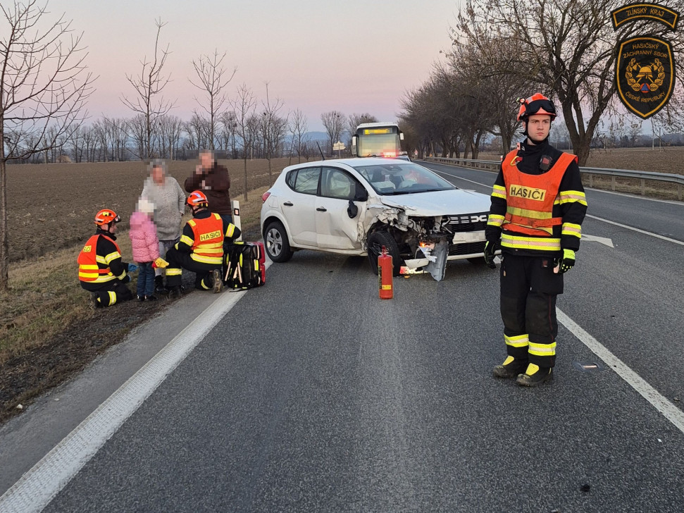 První událost se stala krátce před devátou hodinou dopoledne na silnici I/50 u obce Drslavice. Nedaleko čerpací stanice se střetla dvě osobní vozidla, která zablokovala hlavní tah. Na místě zasahovala jednotka ze stanice Uherský Brod, která okamžitě zabezpečila místo nehody a provedla protipožární opatření včetně zajištění vozidel proti úniku provozních kapalin. Po odklizení havarovaných vozů a úklidu komunikace byl provoz plně obnoven. Událost se naštěstí obešla bez zranění.
