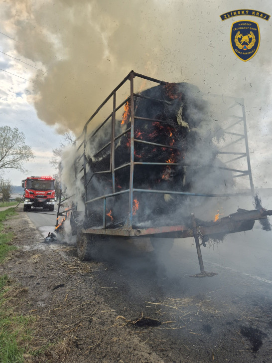 Zlínský kraj – Profesionální jednotka z Bystřice pod Hostýnem a dobrovolné jednotky z Prusinovic a Holešova vyjížděly před půl pátou odpoledne k požáru vleku se senem.