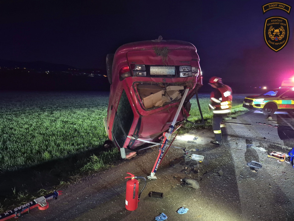 Krátce před 21. hodinou zasahovaly jednotky u další nehody, tentokrát v Buchlovicích na Uherskohradišťsku. Osobní automobil zde havaroval a skončil převrácený na střeše. Řidič utrpěl vážná zranění a hasiči ihned zahájili resuscitaci, ve které pokračovali až do příjezdu zdravotnické záchranné služby. Přes veškerou snahu zasahujících však muž svým zraněním na místě podlehl. Hasiči vozidlo zajistili proti pohybu, provedli protipožární opatření a poskytli první psychickou pomoc osobě, která u nehody zastavila jako první. Po ukončení šetření pomohli s převrácením vozidla zpět na kola, jeho naložením na odtahovou službu a provedli úklid vozovky. Příčina a okolnosti nehody jsou nadále v šetření Policie České republiky. Na místě zasahovali profesionální hasiči z Uherského Hradiště a dobrovolná jednotka z Buchlovic.