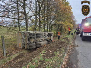Zlínský kraj – Profesionální hasiči ze Zlína a Otrokovic zasahovali minulý čtvrtek dopoledne v Otrokovicích - Kvítkovicích u havárie nákladního vozidla, se kterým sjel řidič ze silnice a převrátil se na bok. Řidič skončil v péči posádky zdravotnické záchranné služby a následně v nemocnici k provedení dalších vyšetření.
