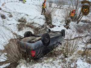 Zlínský kraj – K dramatické dopravní nehodě došlo v úterý před půl osmou ranní na zasněžené komunikaci u obce Kvasice na Kroměřížsku. Řidička osobního vozidla, která cestovala se dvěma dětmi, sjela mimo silnici, kde se automobil převrátil na střechu do koryta místního potůčku.