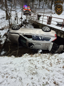 Velké Karlovice - V úterý dopoledne vyjížděli hasiči k dopravní nehodě jednoho osobního vozidla ve Velkých Karlovicích na Vsetínsku. Vozidlo sjelo ze silnice a skončilo na boku v korytě místního potoka. Událost byla na tísňovou linku oznámena prostřednictvím systému eCall.