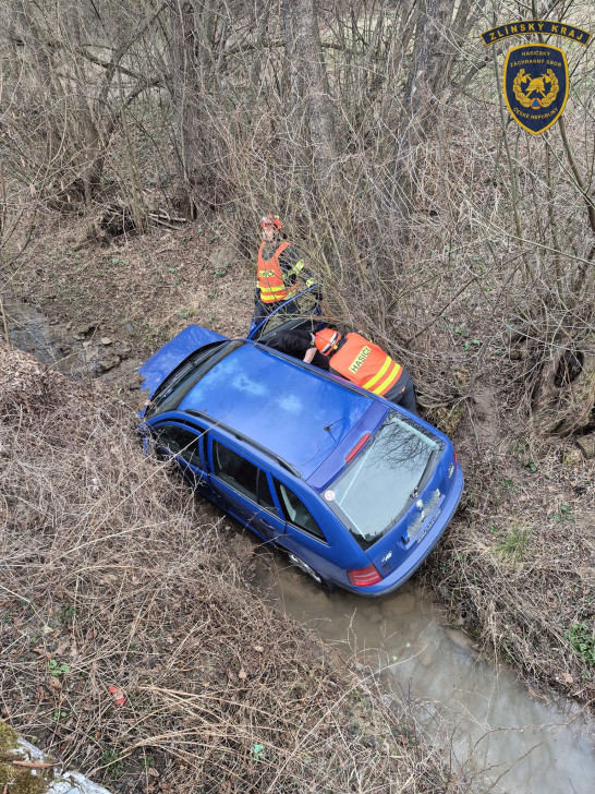 Nehoda dvou osobních vozidel. Jedna zraněná osoba stejně jako v prvním případě skončila v péči posádky zdravotnické záchranné služby. Jedno z vozidel skončilo v potoce. Hasiči položili na hladinu sorpční hady, aby zabránili úniku provozních kapalin do vodoteče. Zasahující: HS Luhačovice