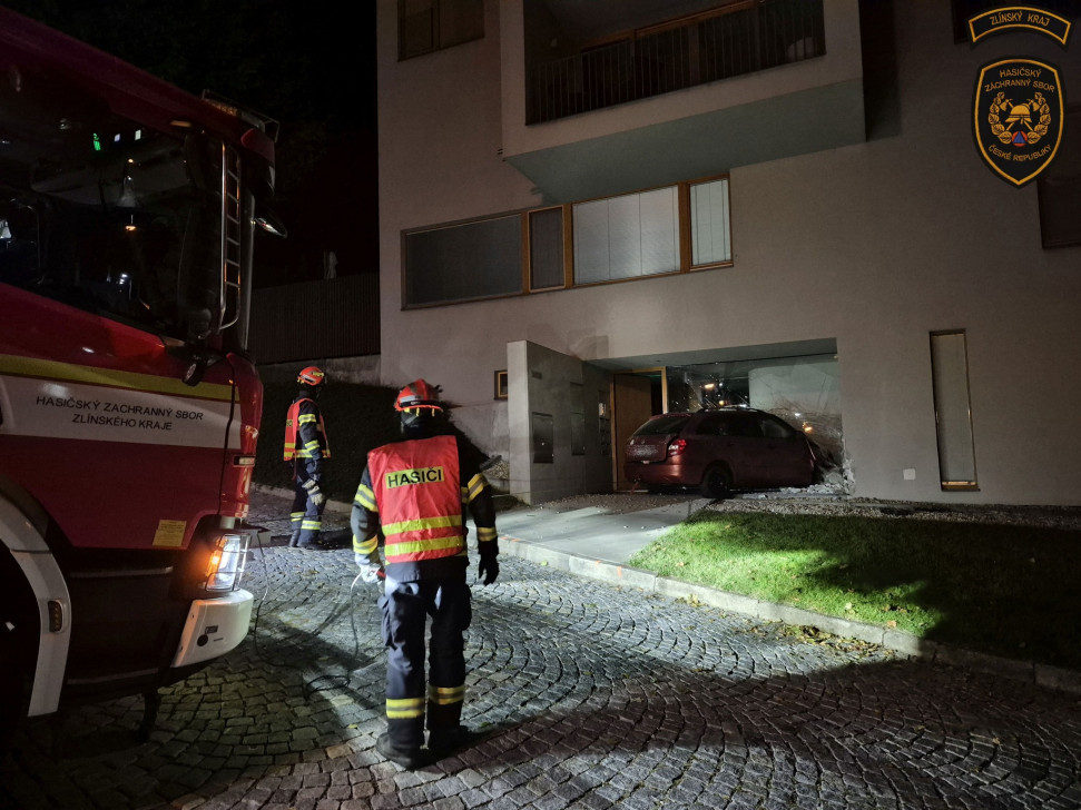 3:10 – Dopravní nehoda osobního vozidla, které vjelo do domu, se stala v ulici Partyzánská ve Zlíně. Zraněnou osobu si převzali do péče zdravotničtí záchranáři. Hasiči za pomoci navijáku vytáhli vozidlo z domu a uklidili střepy. Poté předali místo události a vrátili se zpět na základnu.