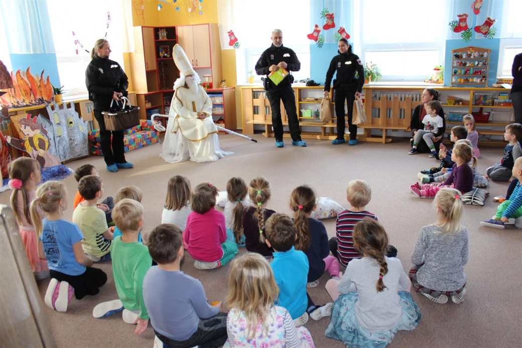 Tradiční mikulášský dárek dostala část mateřských škol v Rožnově pod Radhoštěm. Z rukou ředitele Městské policie Rožnov Aleše Pilaře a strážníků Kateřiny Poláškové a Jakuba Vaška děti obdržely reflexní vesty a sladkosti a učitelky stavěcí terče.