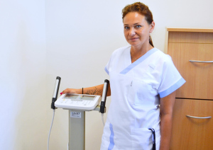Multifrekvenční tělesný analyzátor představuje vrchol současné technologie v oblasti analýzy tělesného složení. „LED displeje zobrazují výsledky měření i detailní analýzu ve snadno čitelném formátu, což umožňuje okamžitou interpretaci naměřených údajů. Výsledky analýzy složení těla se automaticky ukládají a mohou být dále odeslány do počítače nebo vytištěny,“ říká všeobecná sestra interní odborné ambulance, Hana Minářová.