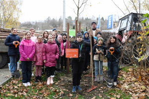 Val. Meziříčí – Ve čtvrtek 13. listopadu pokračovala další etapa obnovy březové aleje kolem hlavní silnice I/35 v ulici Rožnovská. Město Valašské Meziříčí zde s podporou Nadace ČEZ a za asistence dětí ze ZŠ Masarykova vysadilo dalších 15 stromů.