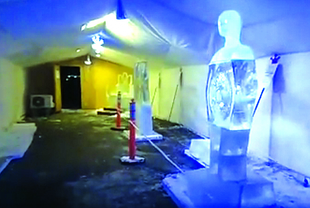 Přístřešek se zhroutil uplynulou sobotu po desáté hodině dopoledne krátce po otevření. Samotná větev neudržela tíhu sněhu, dopadla na dřevěný nosník a celý zaizolovaný stan se sesunul. Škodu odhadují pořadatelé na dvě stě tisíc korun. Žádný z návštěvníků neutrpěl zranění, k úhoně přišly pouze dvě ledové a jedna sněhová socha, které byly následně opraveny. Padesát metrů dlouhá plátěná hala byla rozebrána a odklizena, takže výstava i nadále pokračuje pod širým nebem. Pořadatelé ale musí ze sněhových výtvorů často ometávat sníh. Výstava, která měla být otevřená až do 24. února, tak zřejmě skončí na konci ledna.