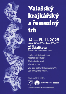 Přijďte si nakoupit, načerpat inspiraci nebo si jen tak udělat radost. Více informací na facebooku – Valašský krajkářský a řemeslný trh. Akci tradičně pořádá město Valašské Meziříčí ve spolupráci se Základní školou Šafaříkova.