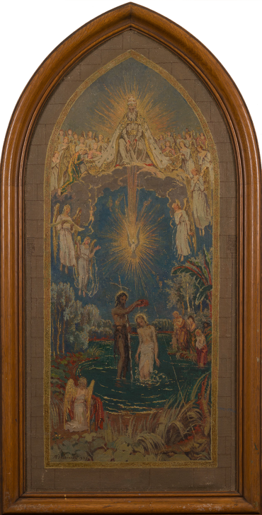 Součástí zakoupených děl jsou i návrhy k nejreprezentativnějším zakázkám Maxe Švabinského, které vytvořil pro chrám sv. Víta v Praze. Jedná se například o autentický návrh slavné mozaiky Křest Krista nebo celkový návrh monumentální vitráže se zobrazením Svaté Trojice. Tyto práce připomínají, že Švabinský nebyl pouze výjimečným malířem a grafikem, ale také autorem děl pro nejvýznamnější české sakrální stavby. Monumentální práci v architektuře doplňuje ještě trojdílný Návrh na mozaiku Památníku osvobození na Žižkově.